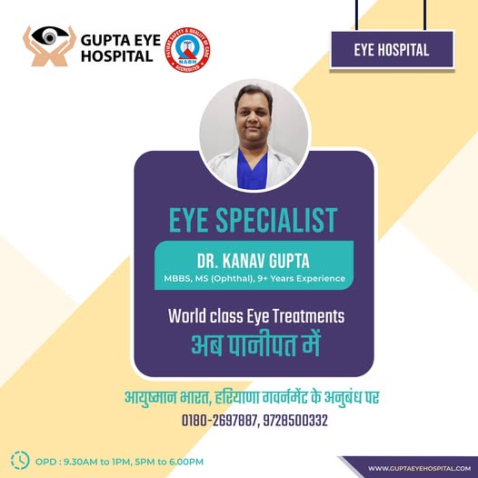 Gupta Eye Hospital, Panipat, led by Dr. Kanav Gupta, offers advanced cataract, LASIK, retina, and glaucoma treatments, making it the number one eye hospital.